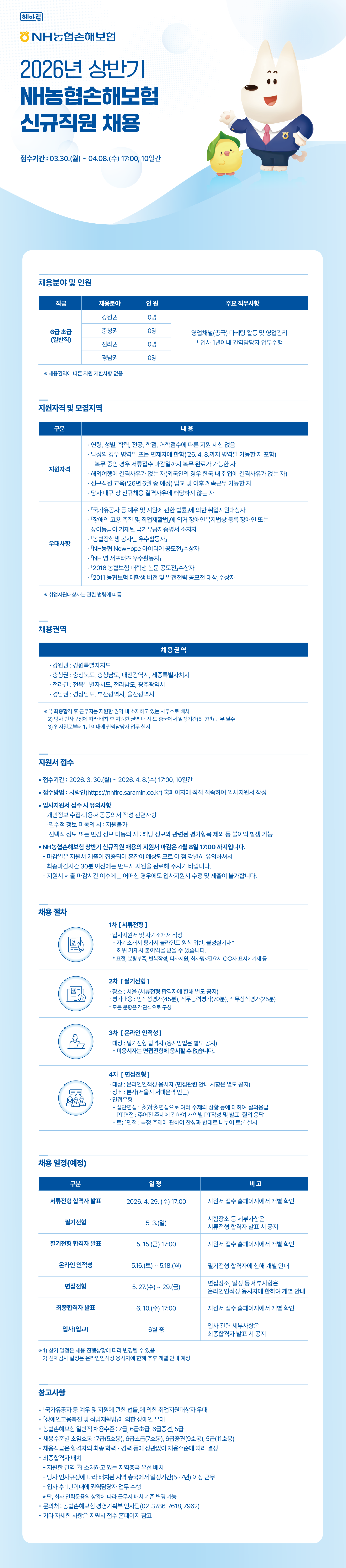 📢 2026년 상반기 NH농협손해보험 신규직원 채용 (~04/08(수) 17:00까지)