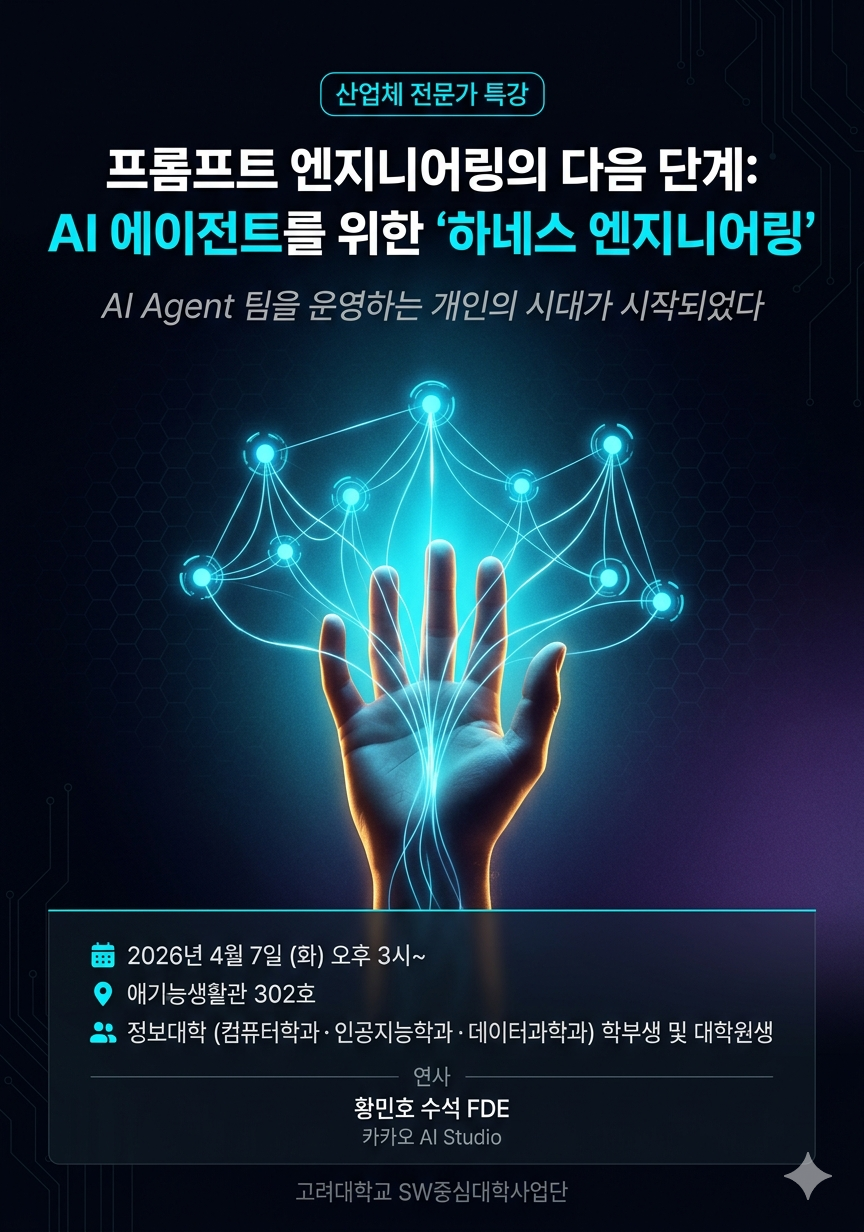 | 제목 | [SW중심대학] 카카오 황민호 수석 FDE 초청 강연 (4.7.(화) 15시) |