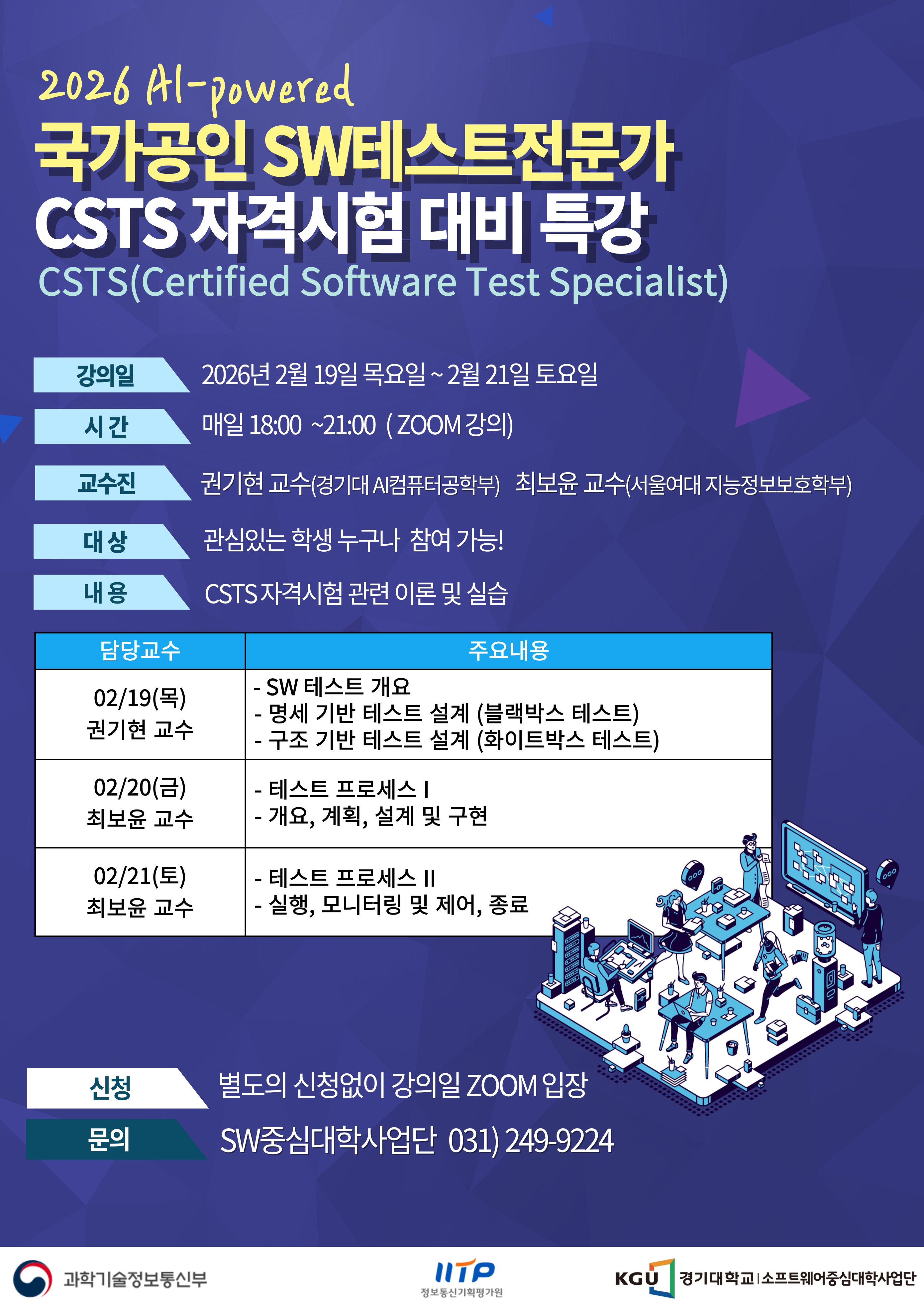 경기대학교 SW중심대학 소프트웨어테스트전문가(CSTS) 특강 1일차 2026년 2월 19일 18:00 오후 서울 |